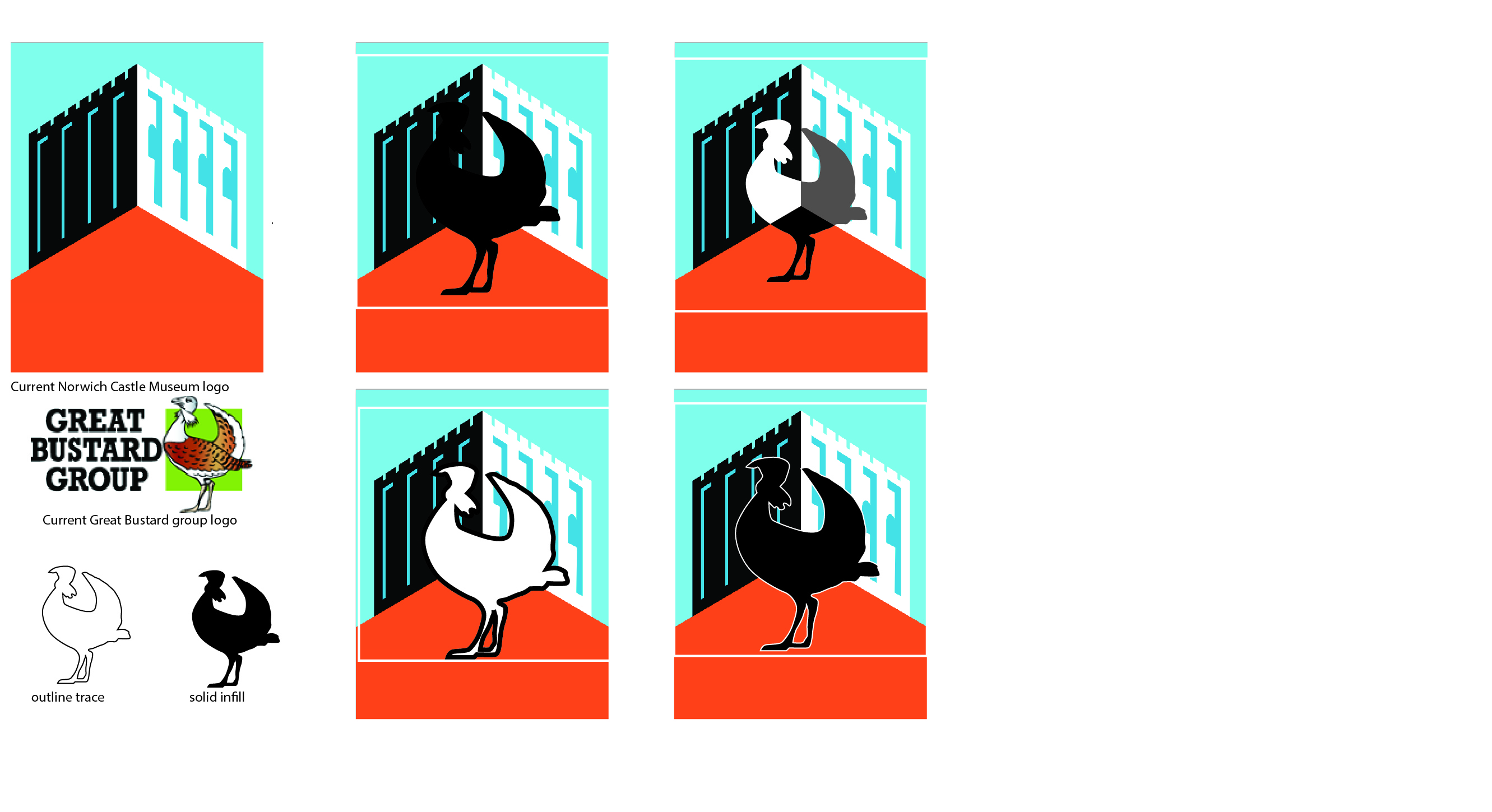 Based on the Great Bustard group logo I outlined the bird in Illustrator and then applied slightly different effects to the bird outline whilst placing it on top of the Castle logo. It does need to be a really strong shape led design for the trigger to work best so have used solids rather than fine gradients and fills.
