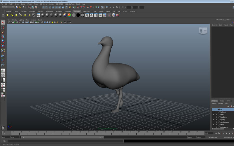 First day totally immersed in MAYA, very pleased with most of the model, all bar the tail, will need to go back into this and re-model, but pleased with my first attempt, it seemed so easy in the tutorials!!!