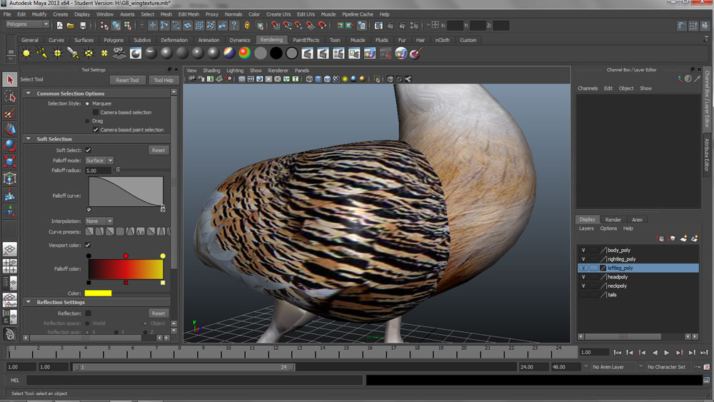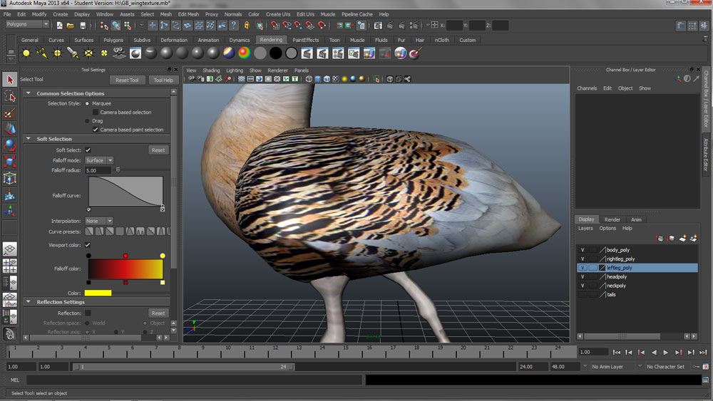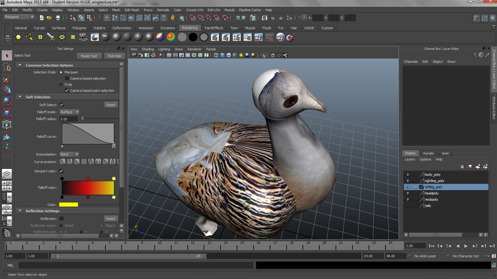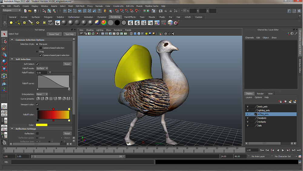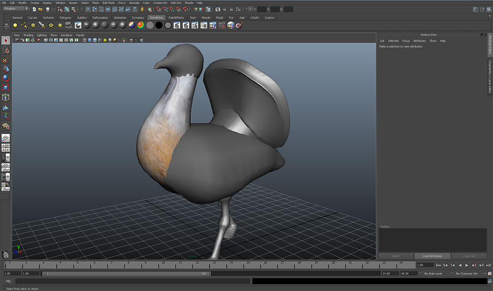 After making my basic model in Maya, I really wanted to use the UV mapping controls to get some texture onto the model, to make it more realistic and to see just how complicated realising a virtual bird might be.