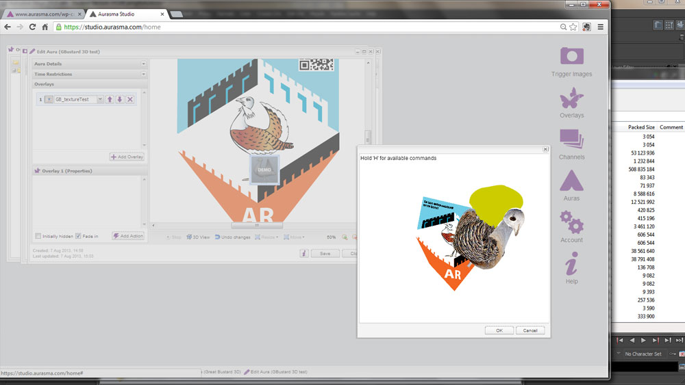then combine these 3 elements into a .tar folder (much like a zip file) I used the free 7zip software. Now it’s ready to go onto the Aurasma studio and load up your new trigger and overlay.