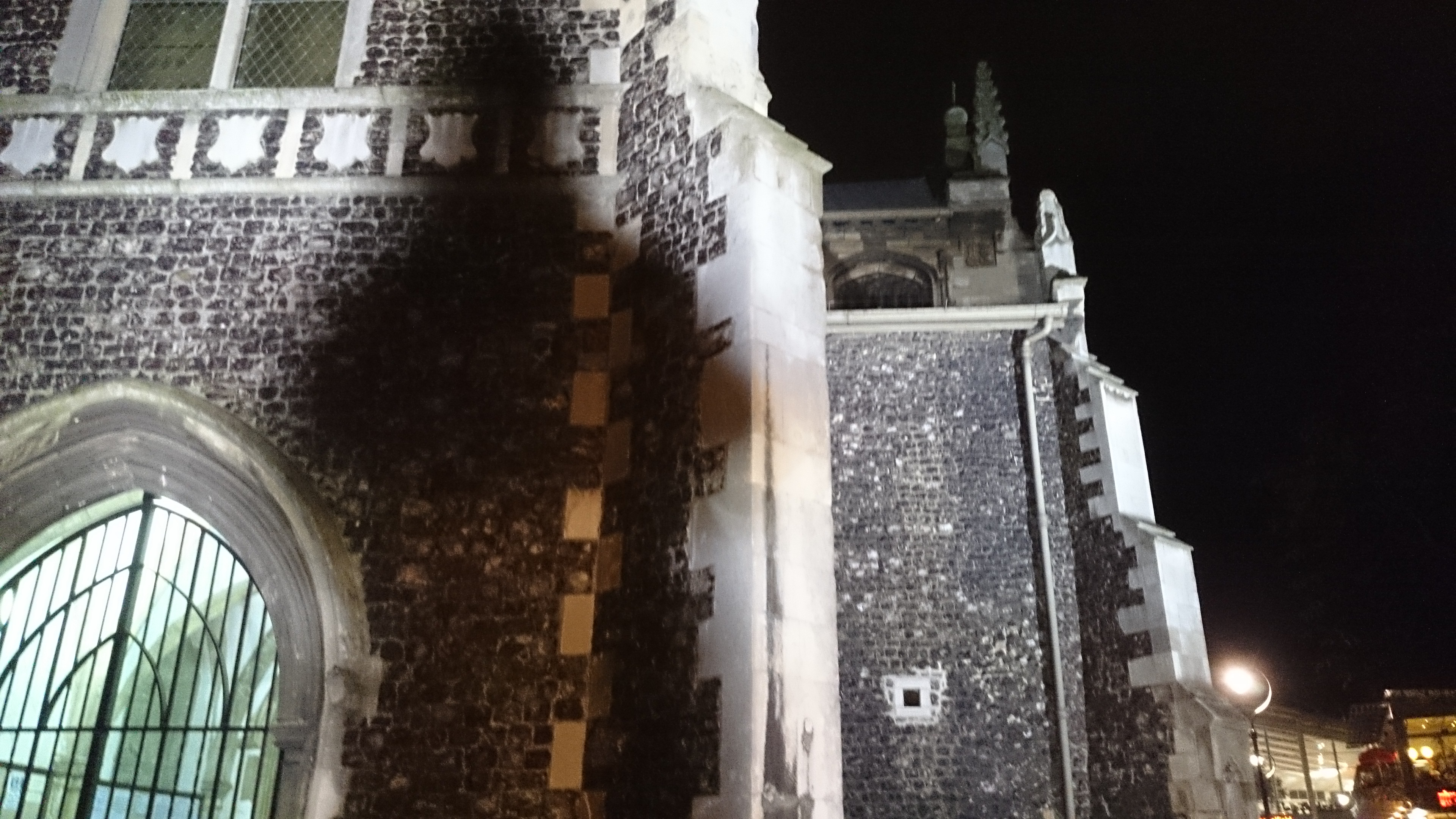 On the way to my next location – the subway – I walked through the churchyard at chapelfield and as I walked past the floodlight my shadow was cast up onto the church wall, it looked great and I added it to my shot list.