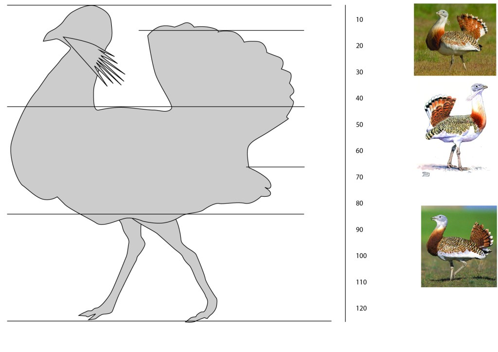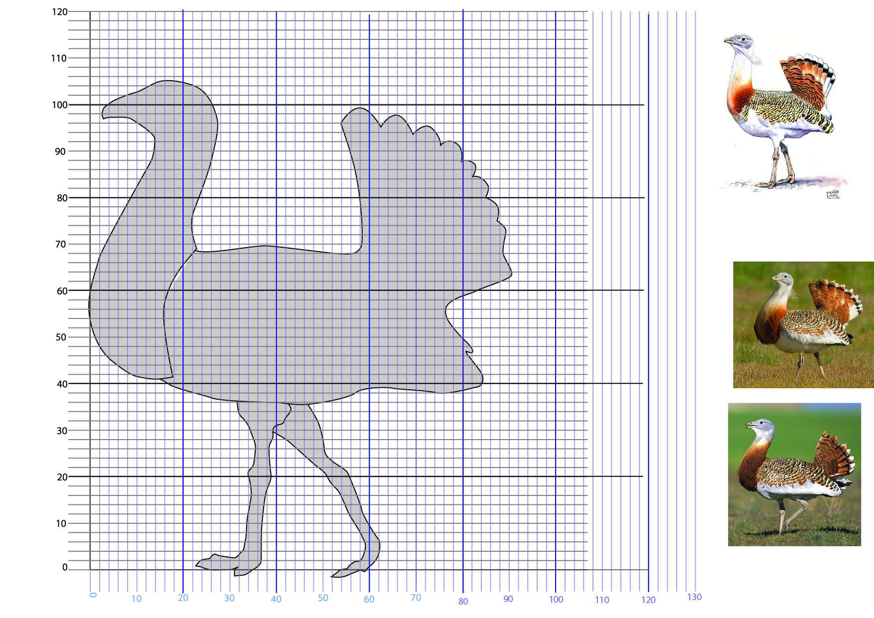 and have the finished workup ready to go. I have already been donated 5 sheets of polystyrene from a BA student who had finished all of his work and no longer needed the extra sheets he’d bought, but when Jim and I measured up, it struck me that the Bustard was looking absolutely massive and I had nowhere near enough poly to make the barrel chest of the bird. So I dashed off to B&Q to buy another 4 sheets, which I then dropped back at College, before going back home and revisiting my original measurements. Good job I did as I had the Bustard 1.2metres at it’s tallest when it’s only 105cm! The same information also had the body length at 115cm, but this was way too long. So with my new designs I returned into college for an afternoon of polystyrene sawing!
