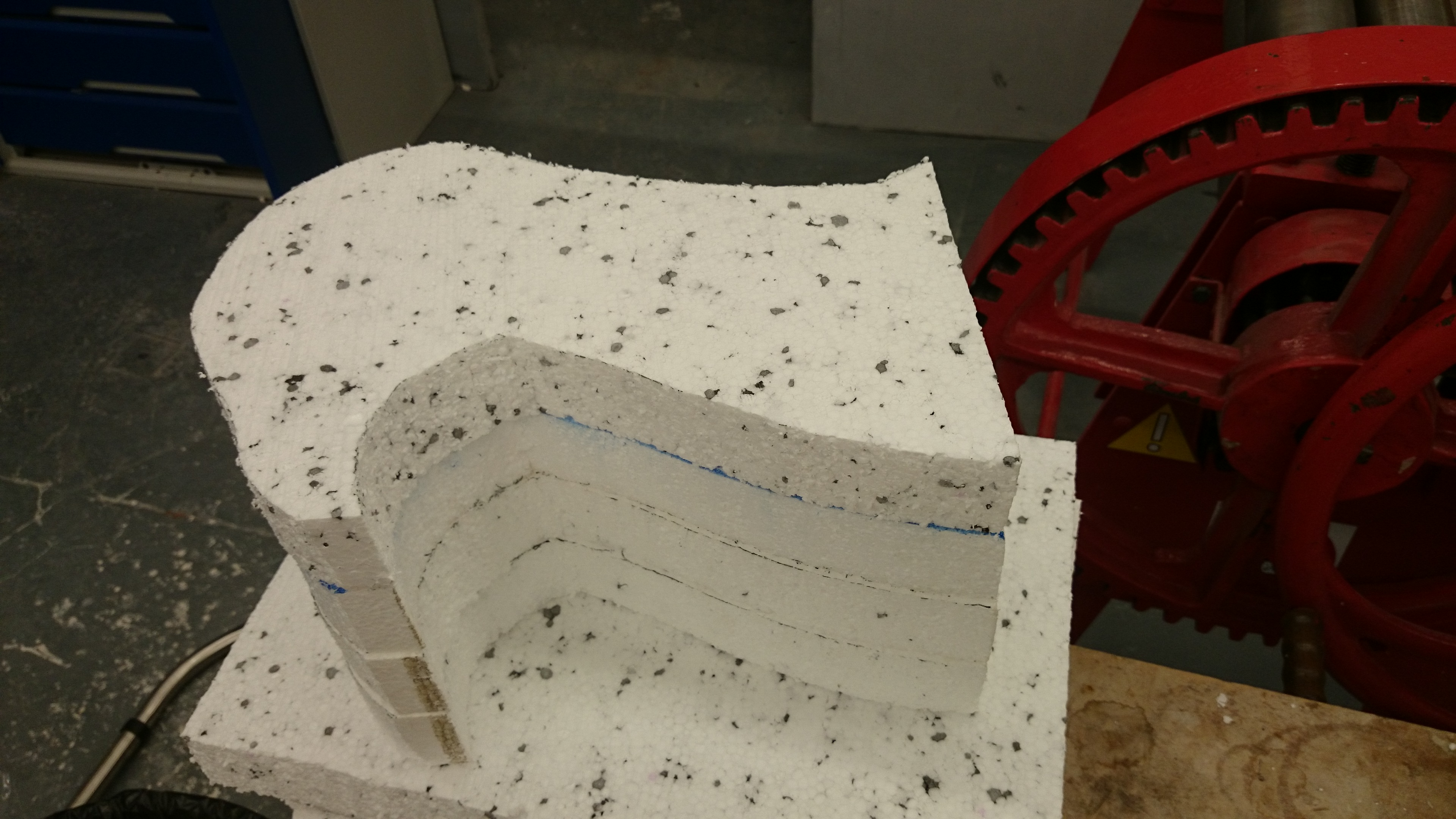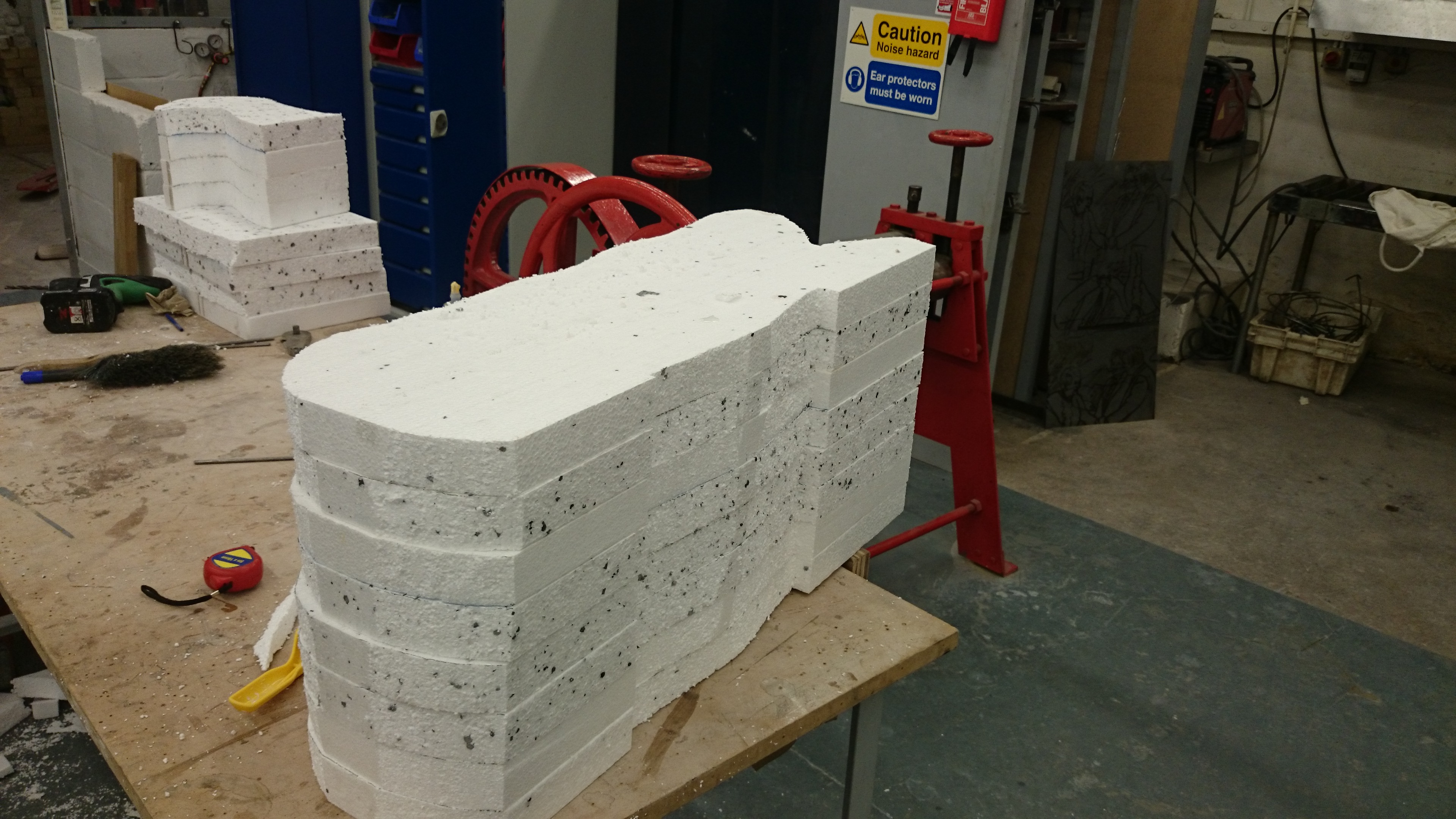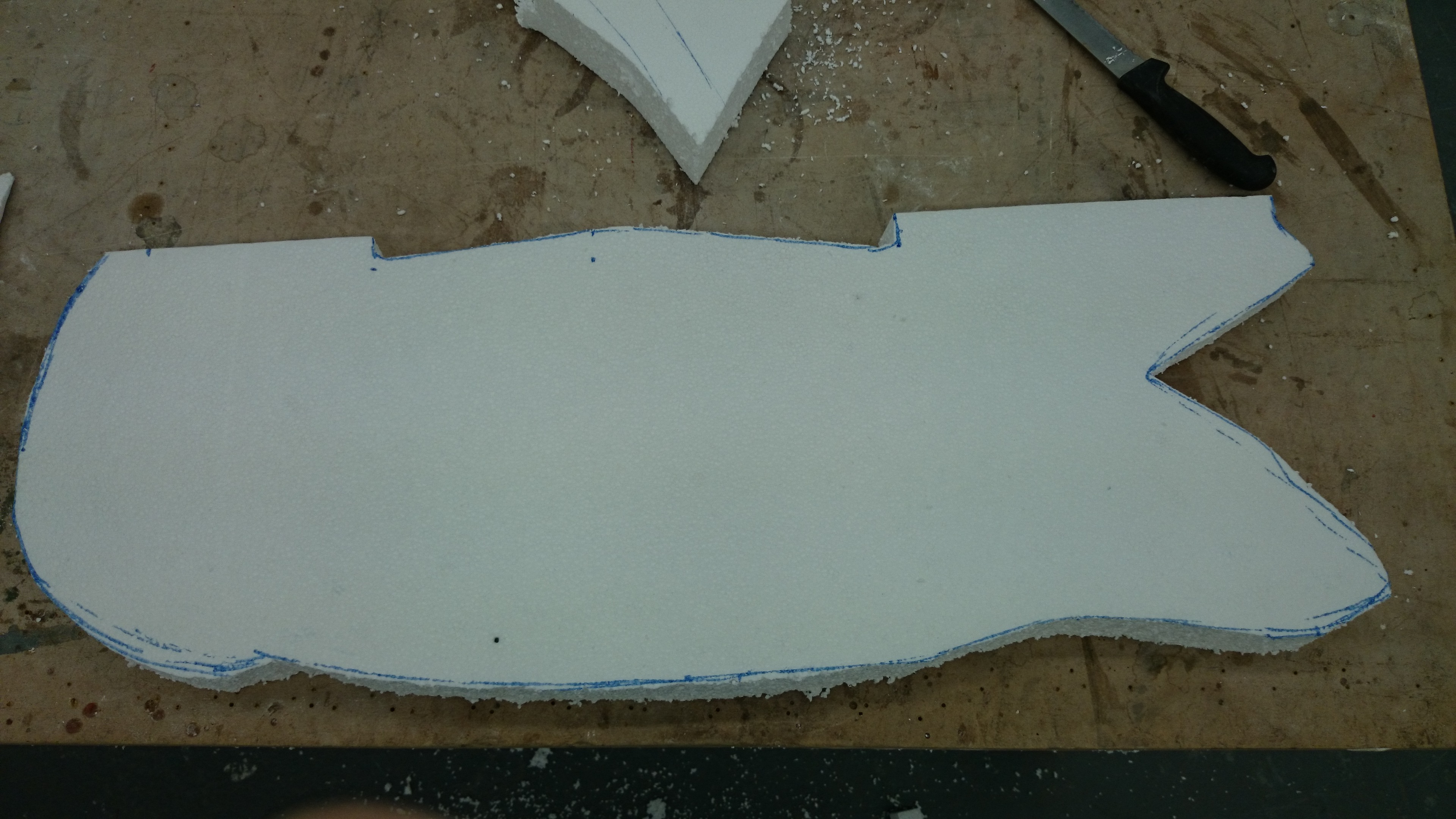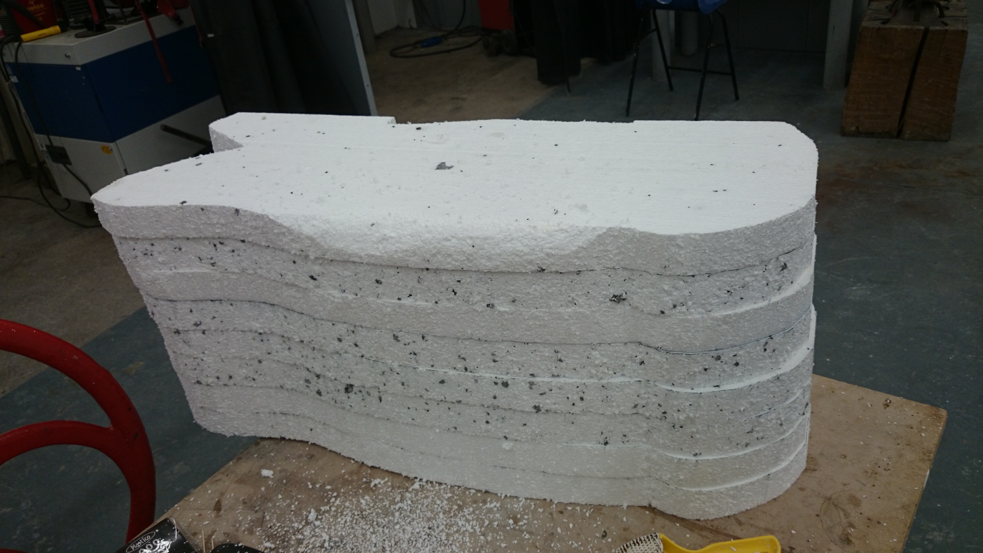 This is the first one cut, not too bad, the bread knife gives quite a good edge, makes it easy to follow the outline although it’s always going to be a bit messy with polystyrene!