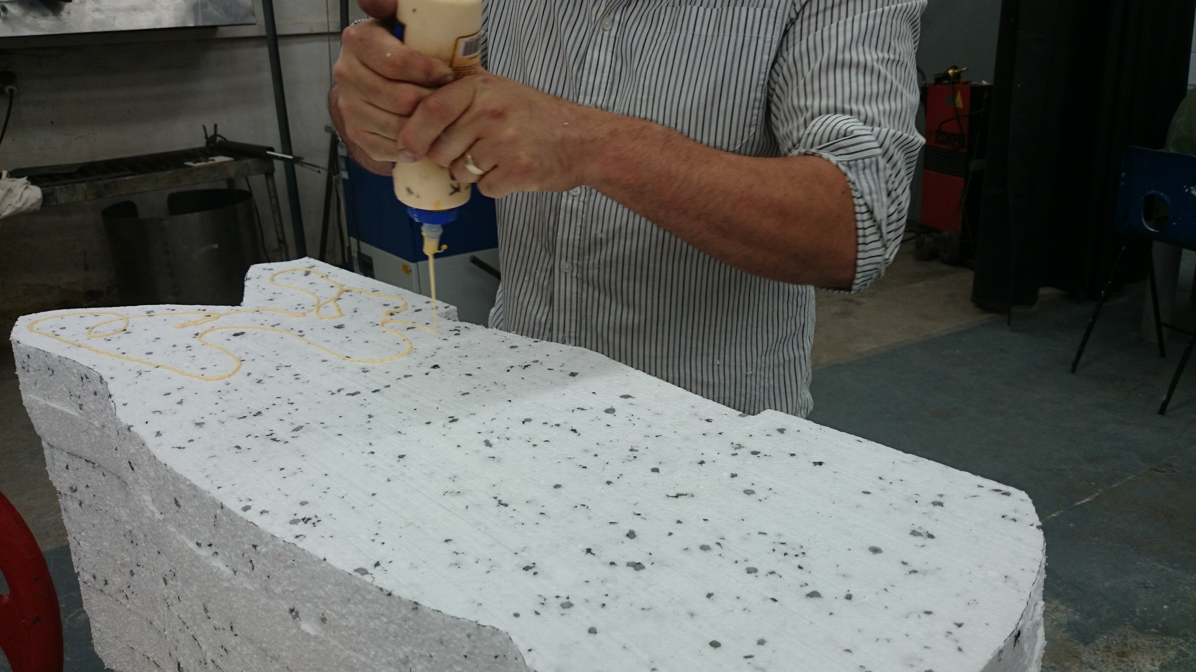 First I marked out the biggest shape, that being the oval of the body which would be the biggest section, I would need to add on the head and the tail to fit in the pieces of poly I was working on…