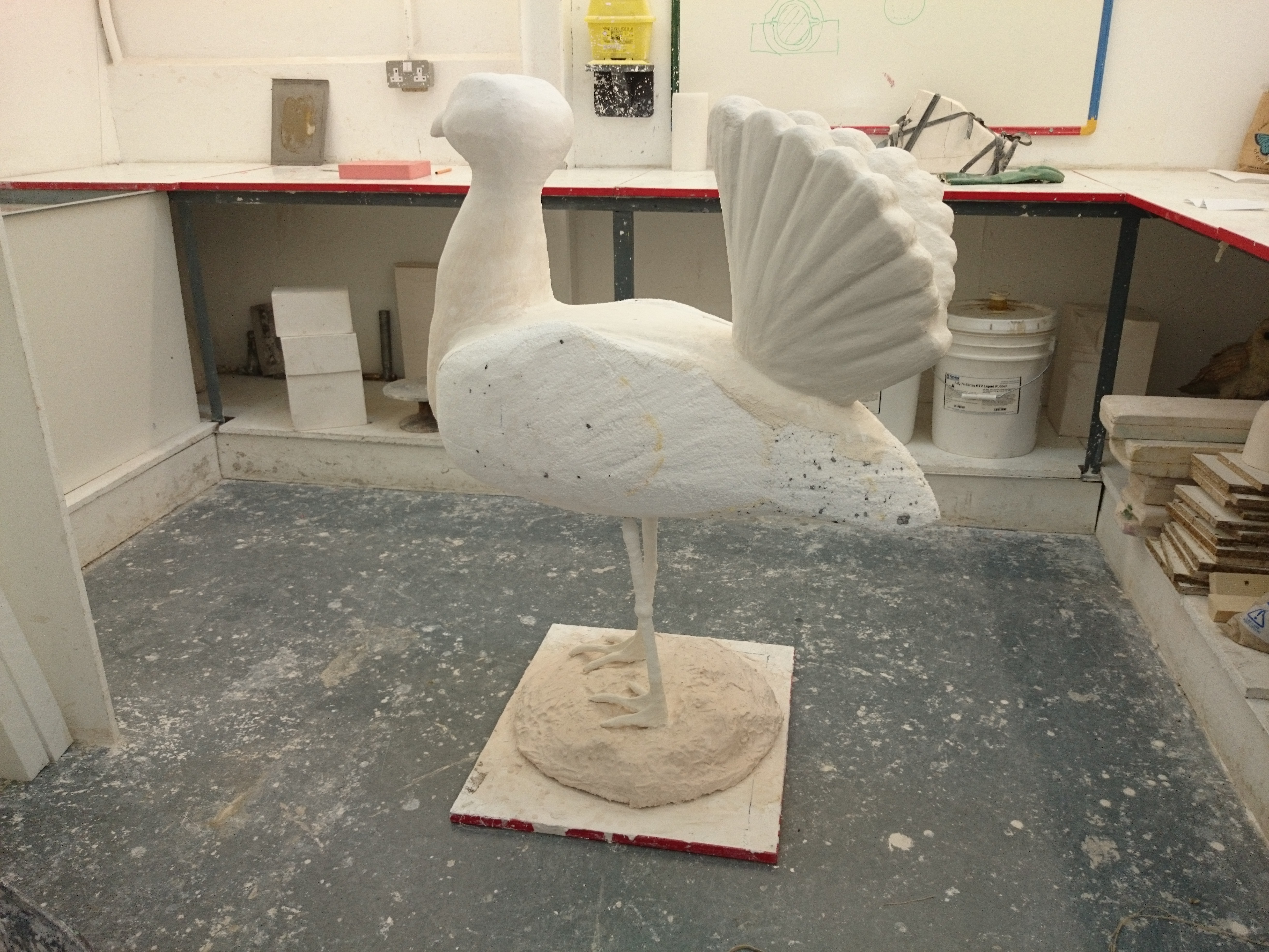After the success of the back of the bird yesterday I work harder and with more water into the dipped area which would be the space between the feathers on a real bustard but is more like a gentle dip on my sculpture.