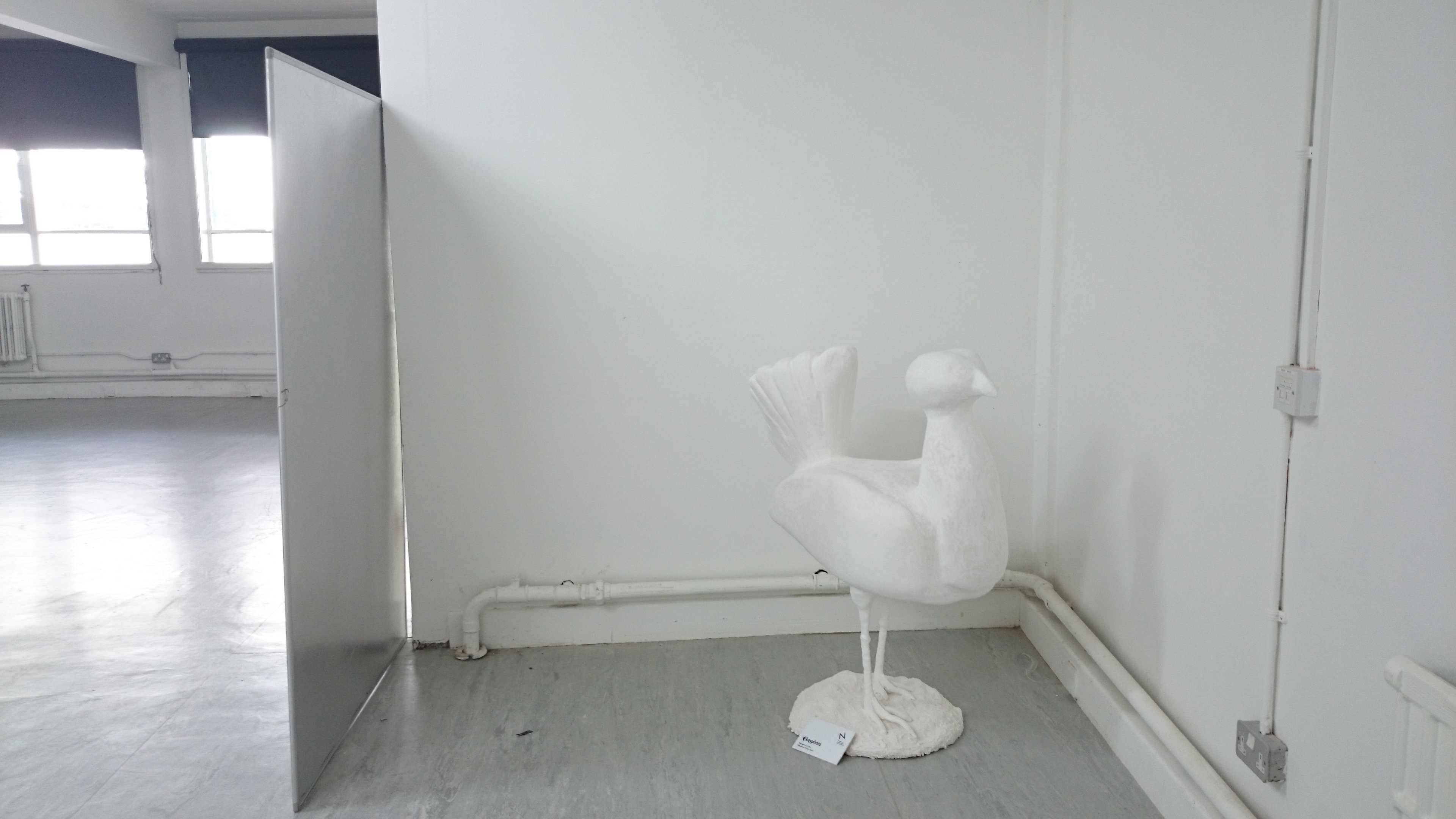 The Bustard sculpture is now practically finished… I could probably sand and sand and re plaster indefinitely, but I’ve decided to see how it looks in the space.