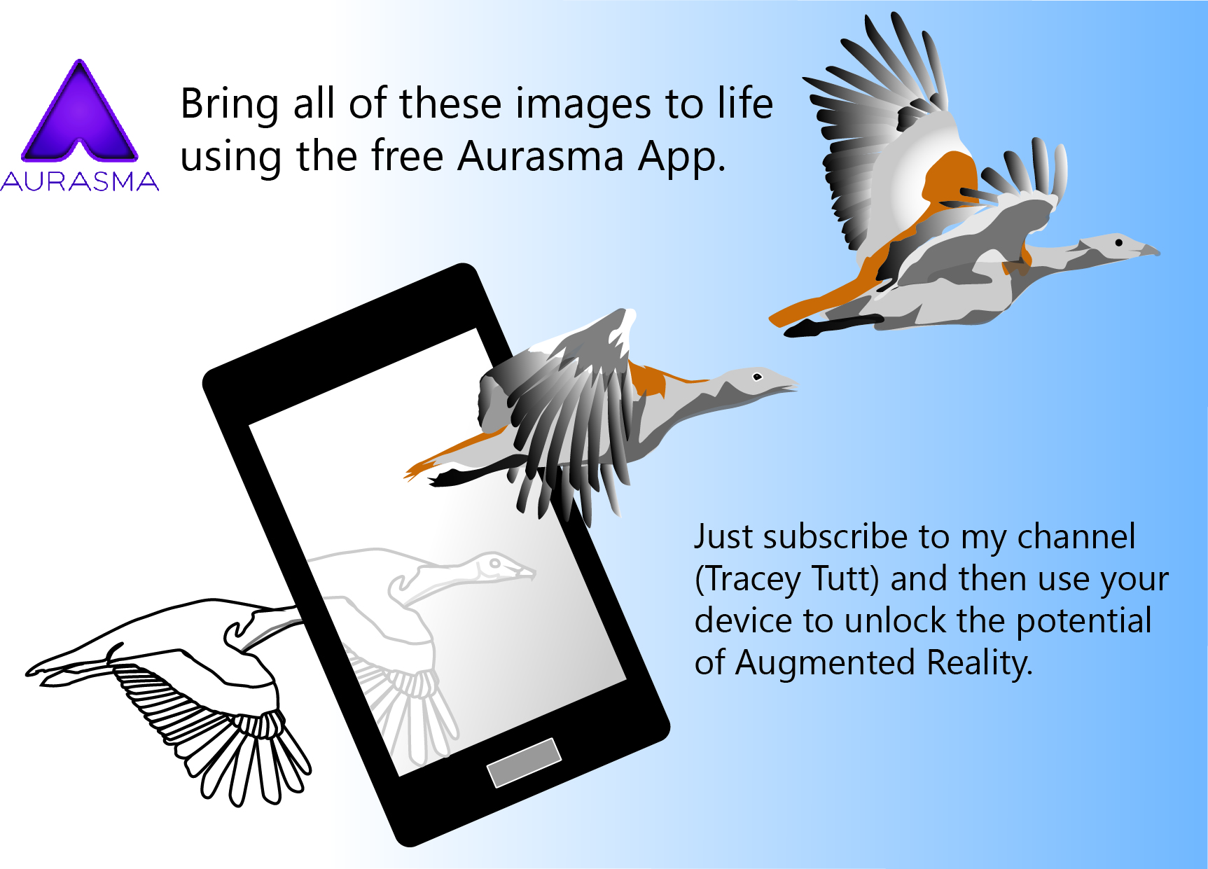 Using my line drawings and full colour Great Bustard illustrations and placing them so they appear to come out of the mobile devices screen in colour, gives the visual clue as to what you can hope to see.