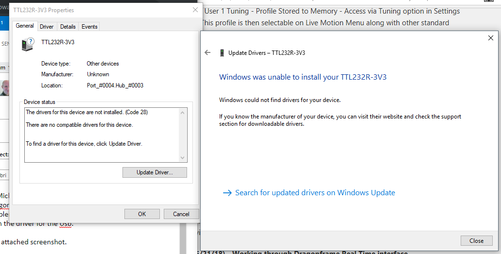 I tried connecting in different ways, plugged in first, plugged in after starting dragonframe, all of the different ways you can get hardware to see software.