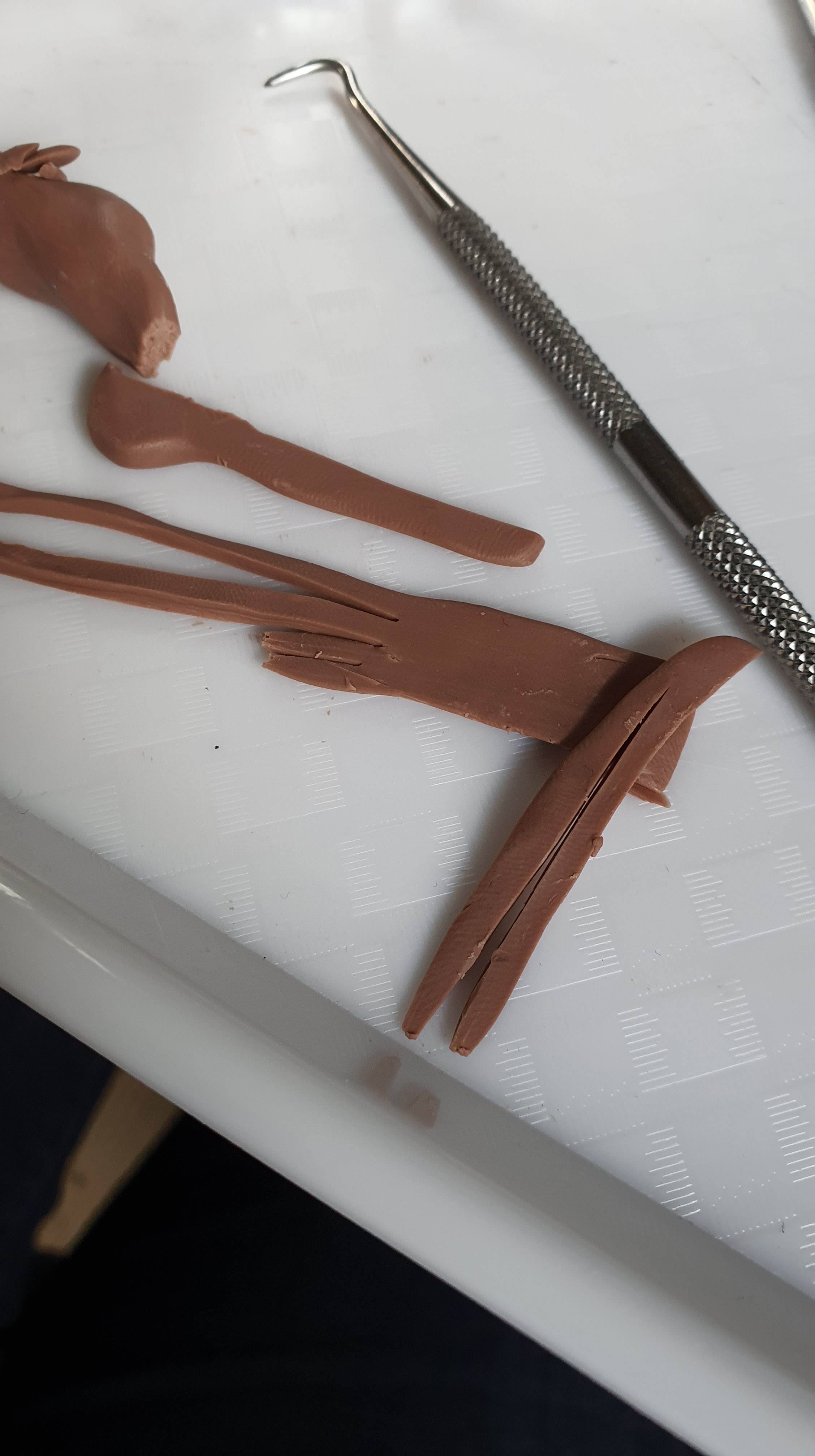I started to just add and push back with the wax carving tools, just to pull at the once again softened clay and add those bits on, a bit like adding leaves and then pushing back into the soft and thinned edges, this was better..