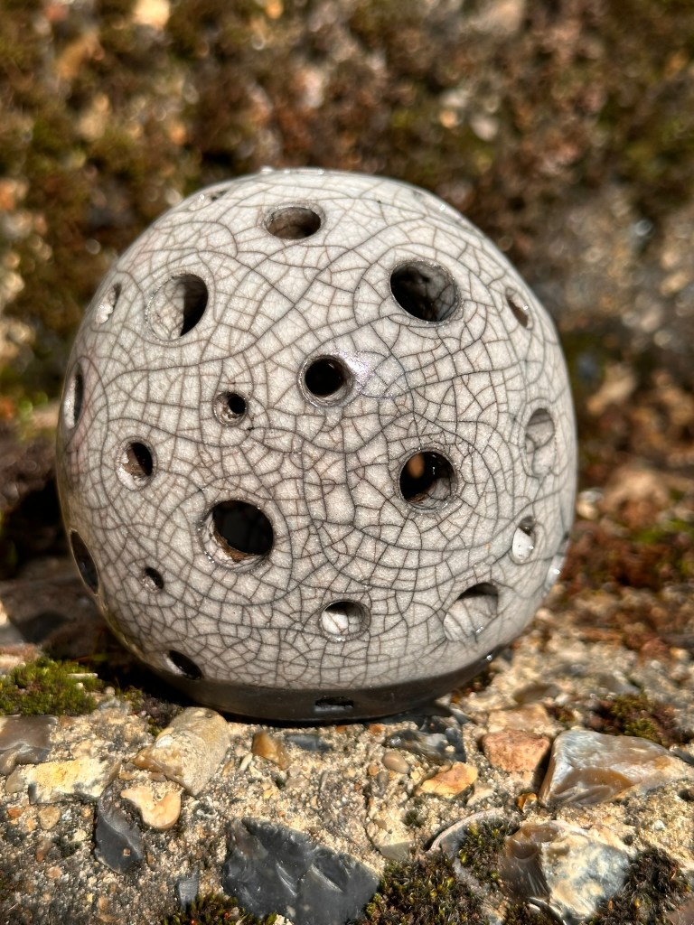 Last year I got given a Raku kiln as a birthday present – best present ever – and although it took me awhile to get all the other bits together, propane, sawdust, reduction bin, when the call came round for who wanted to be a part of the Spring Anglian Potter exhibition, I knew what I wanted to make!